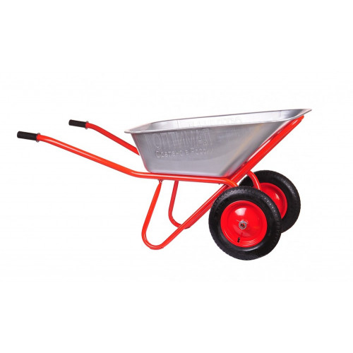 Двухколесная строительная тачка Оптимал предназначена для ремонтных и строительных работ. Устойчивое положение обеспечивают два пневматических колеса. Также имеются 2 подножки, которые делает тележку устойчивой при погрузочных работах и исключают откаты.